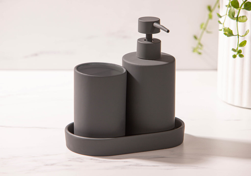 Sleek and compact, the Essentials Bathroom/Kitchen Set suits any space. With a soft matte rubber finish, it’s perfect for sink-side use in kitchens or bathrooms. Ideal for smaller spaces, it keeps things neat, tidy, and clutter-free. A modern essential for everyday living.