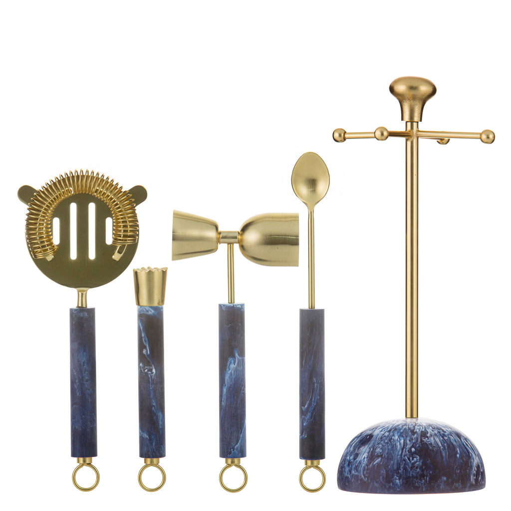 Bennett Resin Barware features striking resin with a marble finish in three colours. Includes cocktail shakers, bar tool sets, ice buckets, trays and bowls with luxe gold accents. Lightweight yet durable, perfect for mixing, serving or display—bringing modern style to any bar setup.
