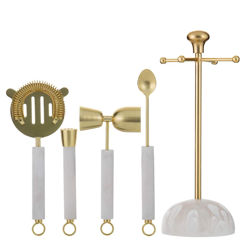 Bennett Resin Barware features striking resin with a marble finish in three colours. Includes cocktail shakers, bar tool sets, ice buckets, trays and bowls with luxe gold accents. Lightweight yet durable, perfect for mixing, serving or display—bringing modern style to any bar setup.
