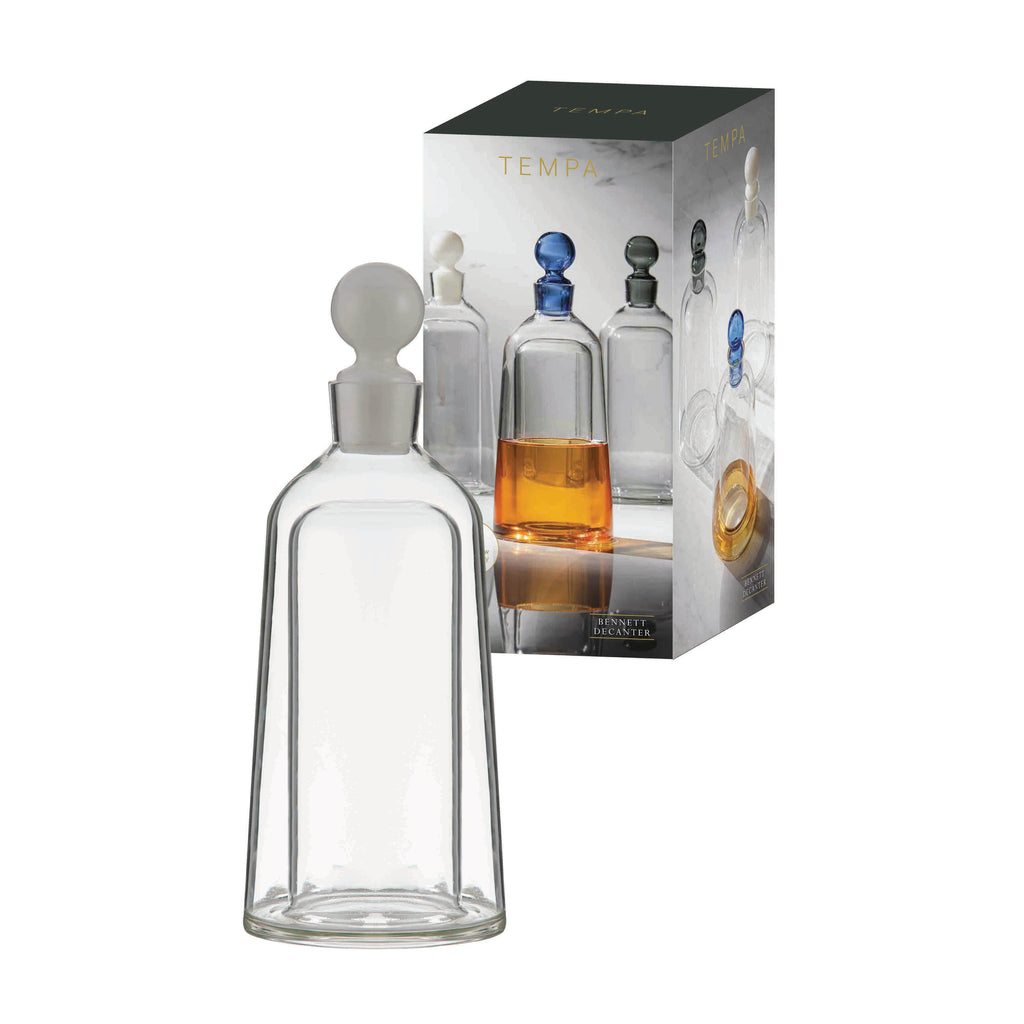 The Bennett decanter is a striking fusion of modern elegance and distinctive design. Featuring a hollow glass body topped with a bold, sculptural stopper, its minimalist silhouette and refined presence make it a conversation starter in any setting.