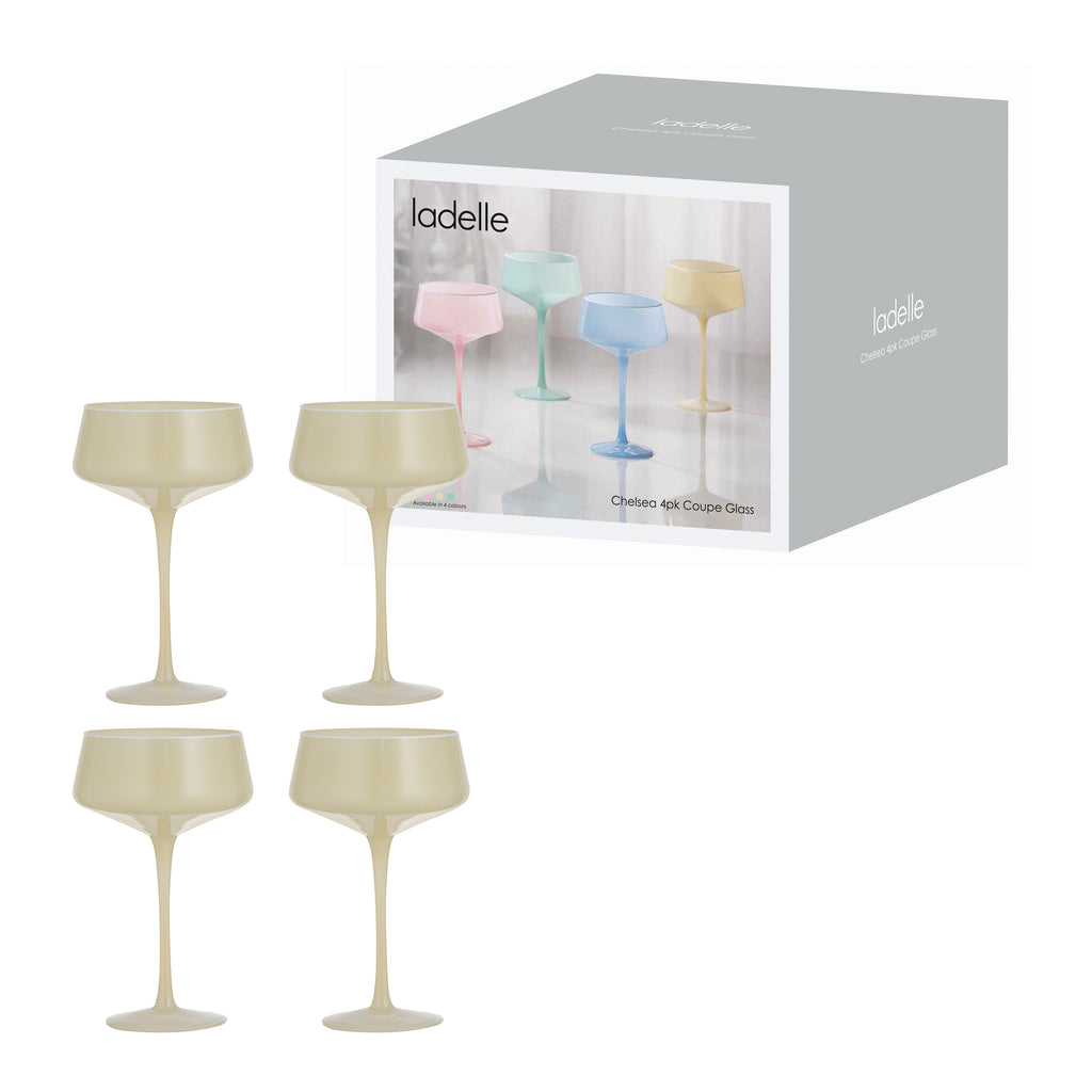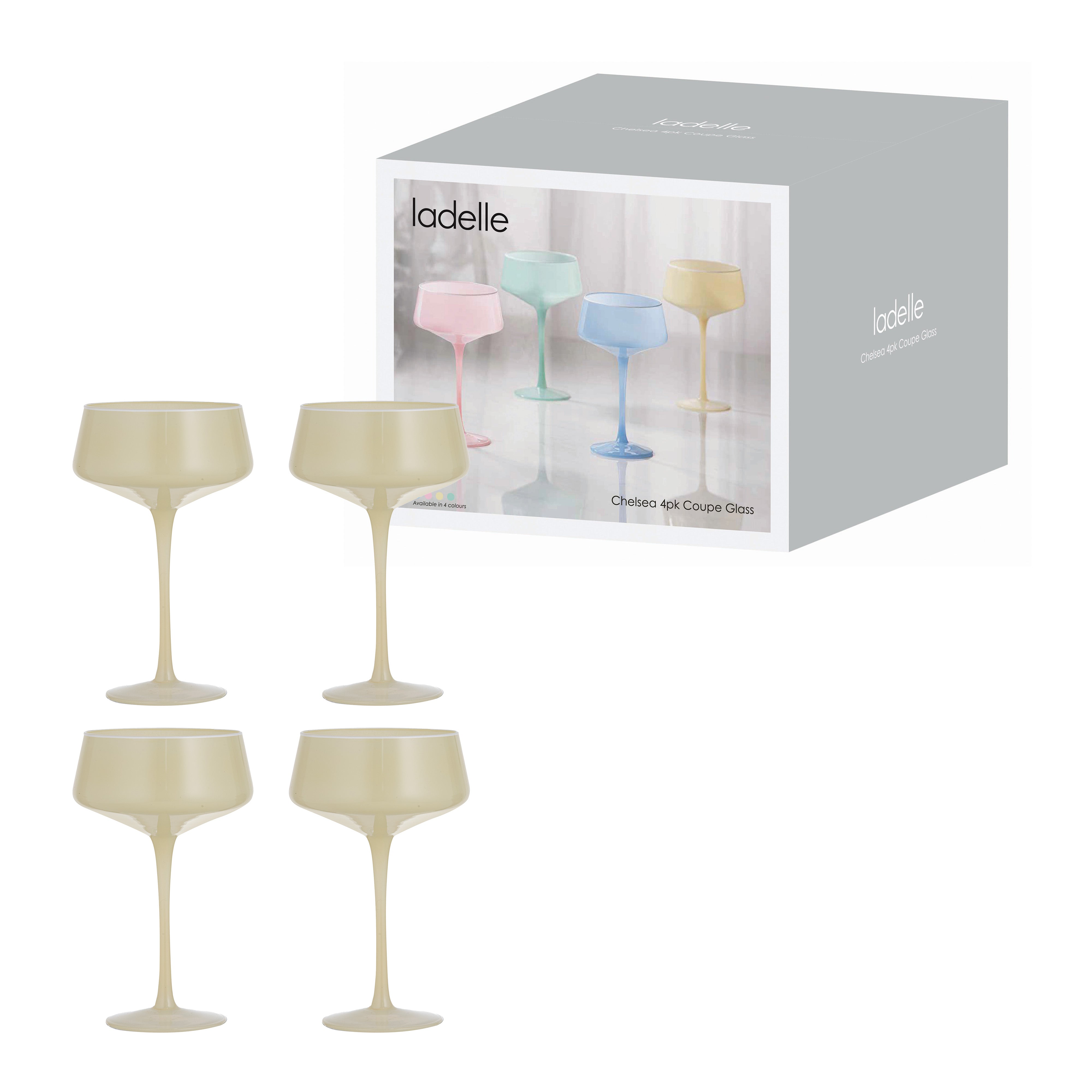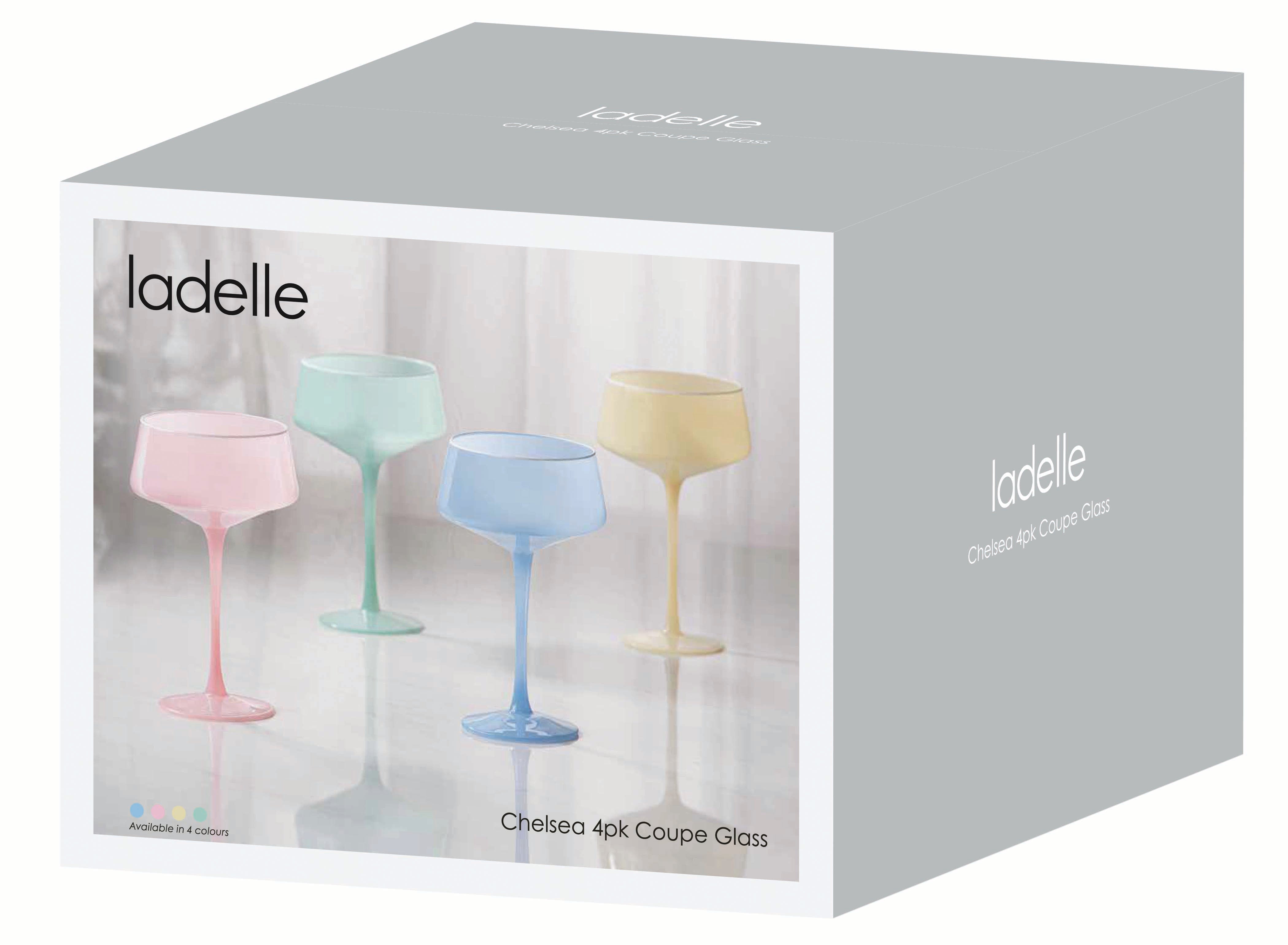 Brighten your table and enhance your summer gatherings with our vibrant Chelsea glassware collection. Fresh pastel tones of mint, sky blue, blush, and lemon highlight a subtle white rim and modern taper silhouette.