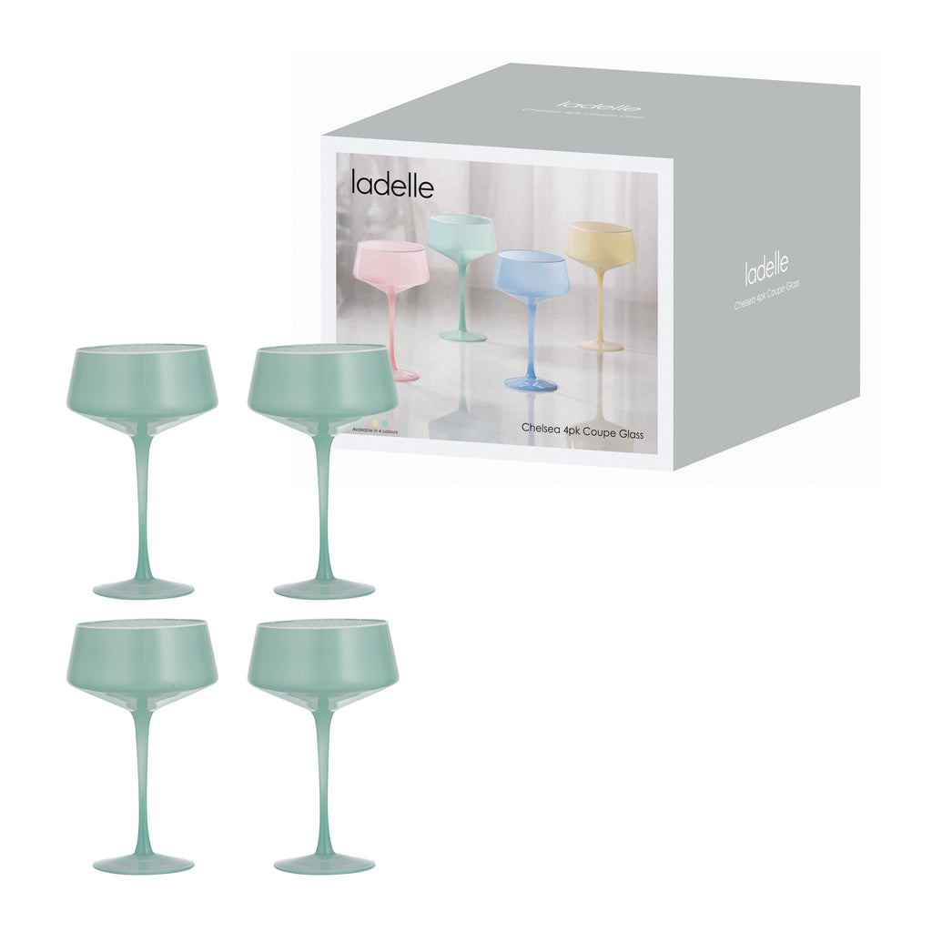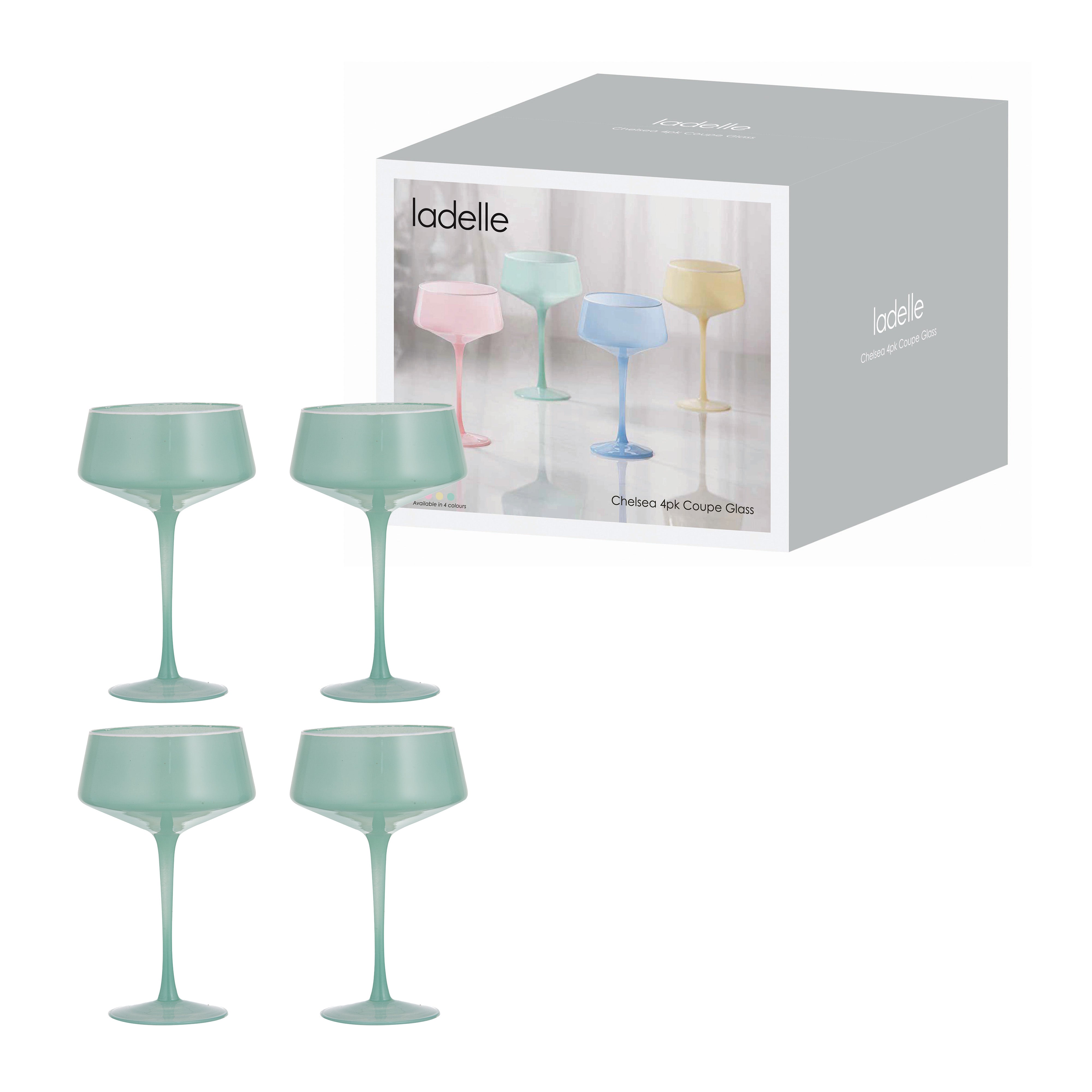 Brighten your table and enhance your summer gatherings with our vibrant Chelsea glassware collection. Fresh pastel tones of mint, sky blue, blush, and lemon highlight a subtle white rim and modern taper silhouette.