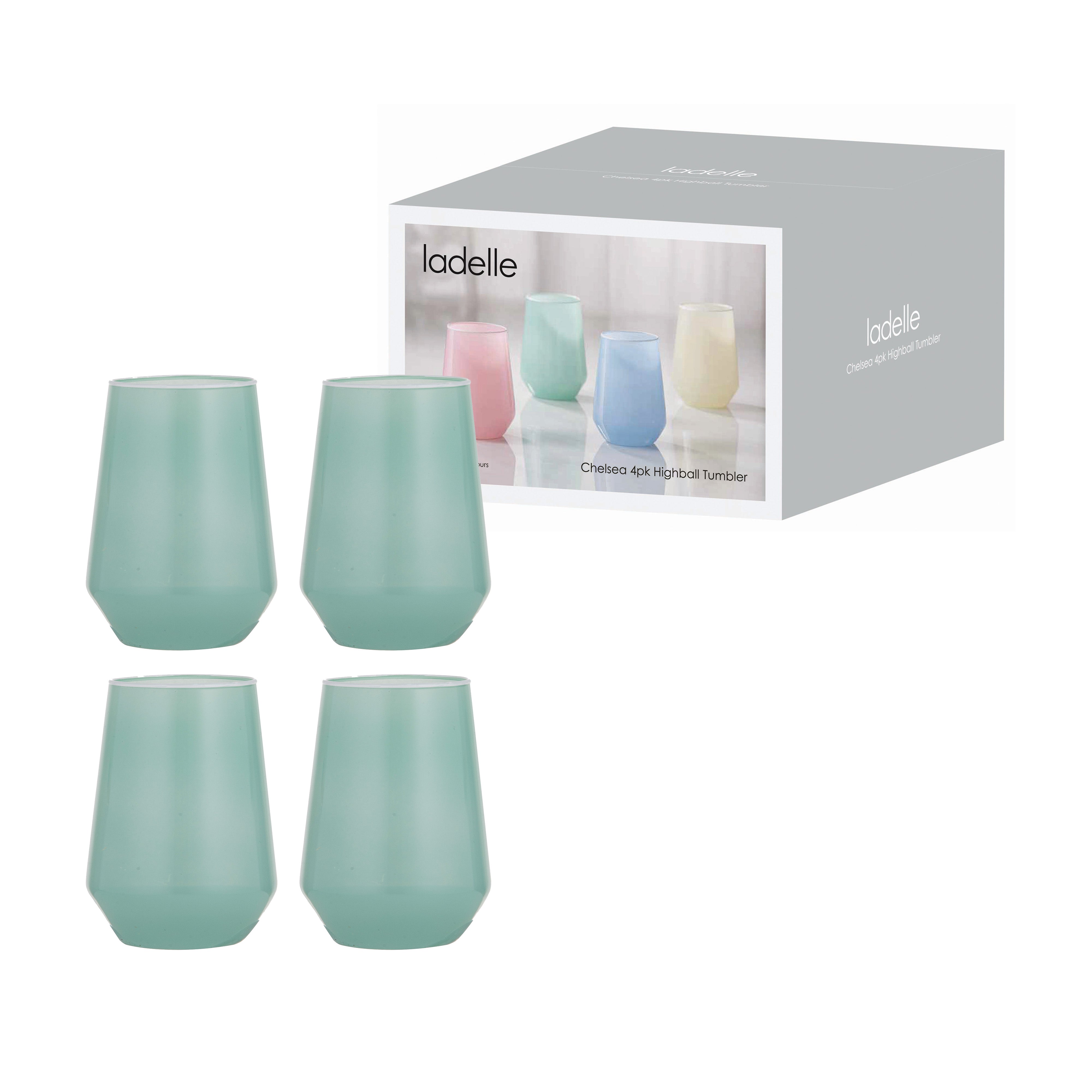 Brighten your table and enhance your summer gatherings with our vibrant Chelsea glassware collection. Fresh pastel tones of mint, sky blue, blush, and lemon highlight a subtle white rim and modern taper silhouette.