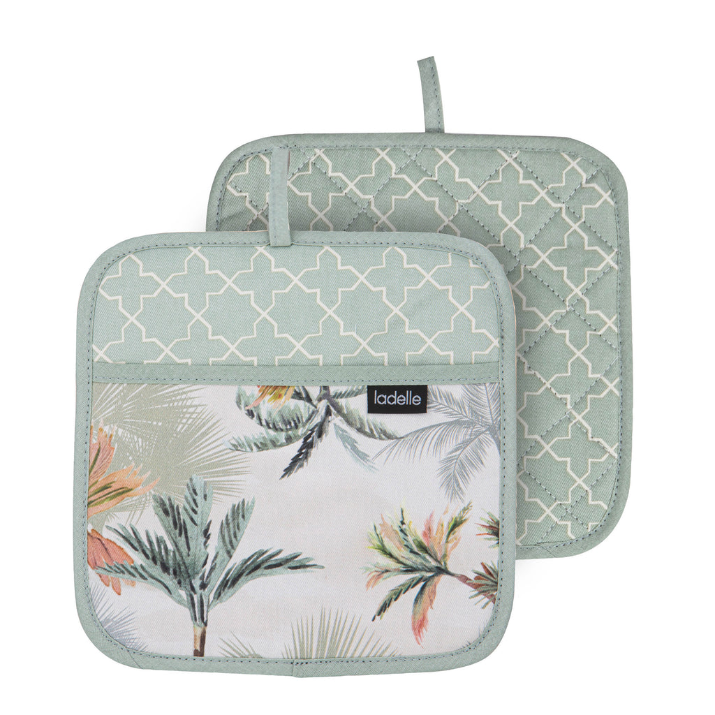 Add a tropical touch to your kitchen with the Panama range. Featuring hand-painted palms and a fresh green geometric print, this collection includes aprons, mitts, gloves, tea towels and pot holders. A relaxed and colourful set for everyday cooking.