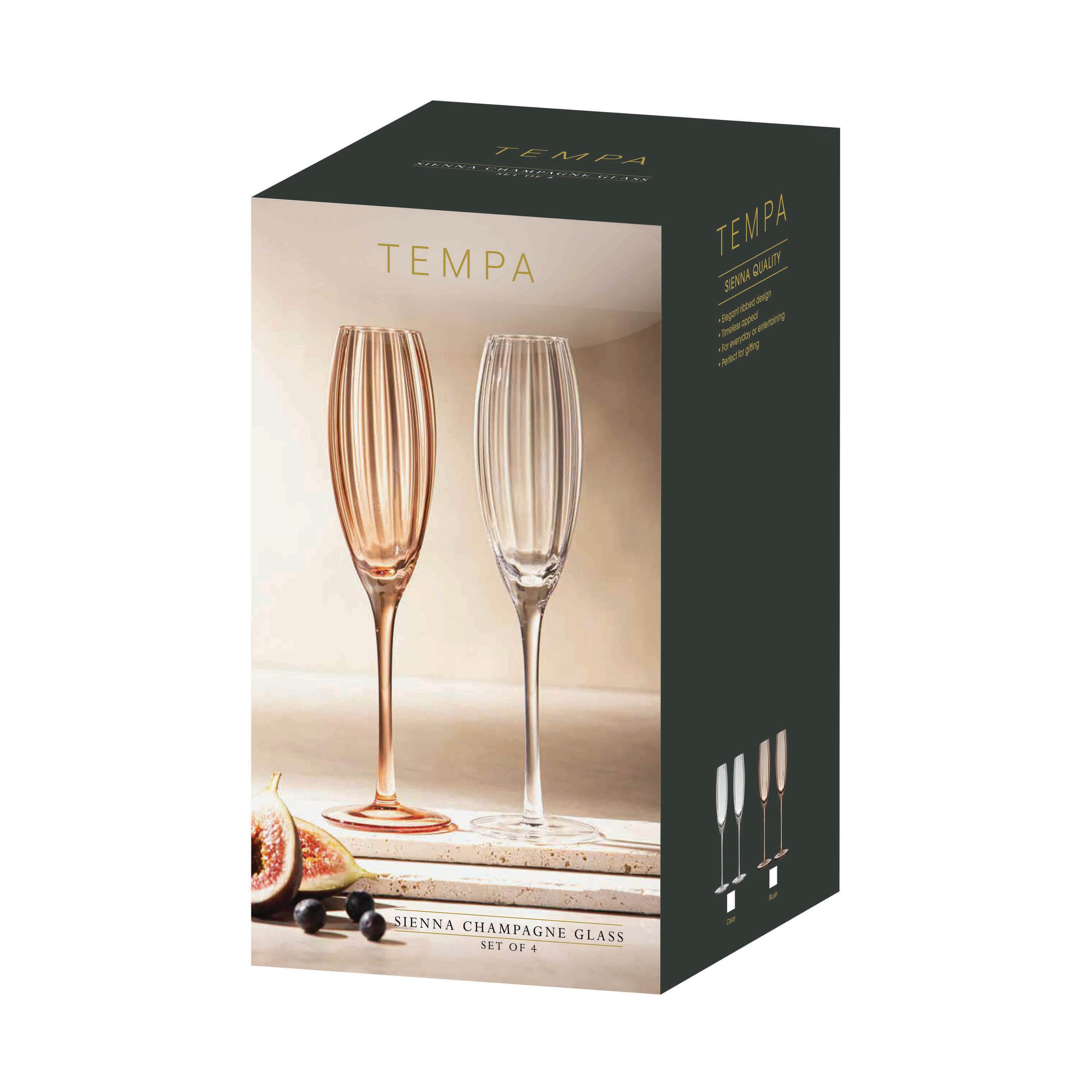 Sienna glassware brings subtle style to any occasion. With soft curved rib detail in clear or blush pink, it’s perfect for everyday drinks or celebrations. Choose from champagne flutes, tumblers, wine, gin and cocktail glasses—sold in sets of four for easy entertaining or gifting.